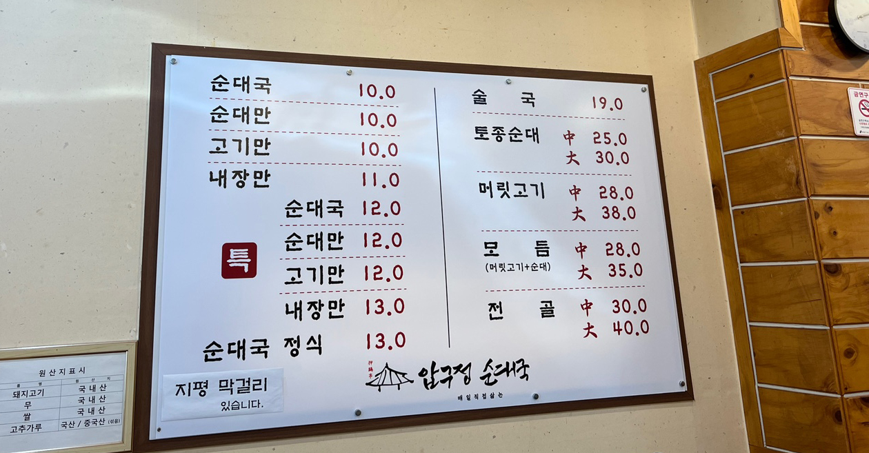 순대국을 좋아하는지라 압구정 근처에 순대국집은 거의 다 가보았는데