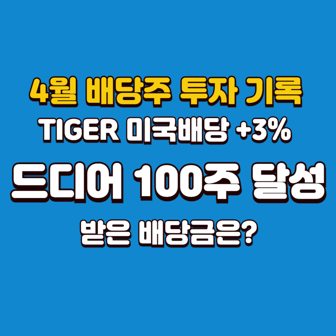 타이거 미국배당 다우존스 +3% 100주 달성. 배당금은 얼마일까? 24년 4월 주식투자 배당금 기록
