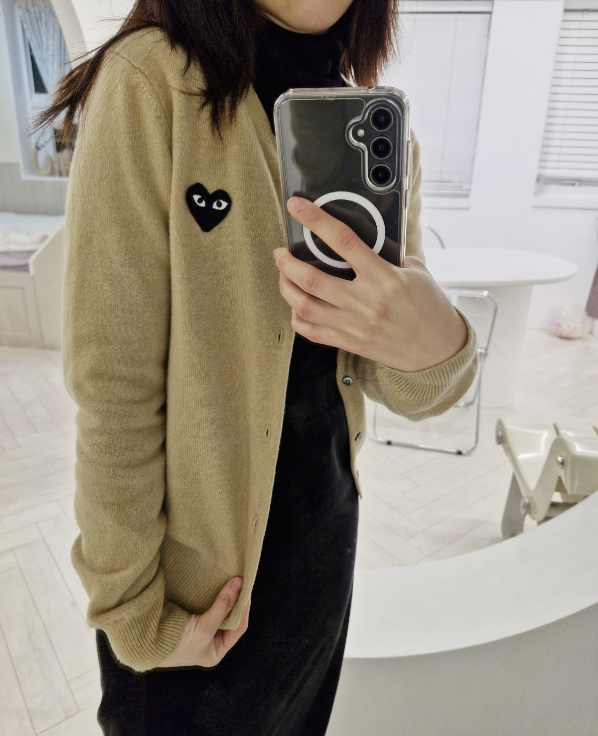 꼼데가르송 가디건 사이즈는 저한테는 여성 M, L 나 남성 S 이 딱인것 같습니다.