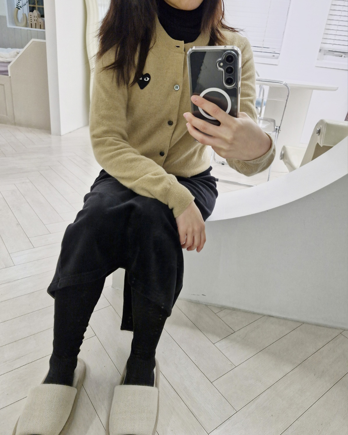 꼼데가르송 가디건 사이즈는 저한테는 여성 M, L 나 남성 S 이 딱인것 같습니다.