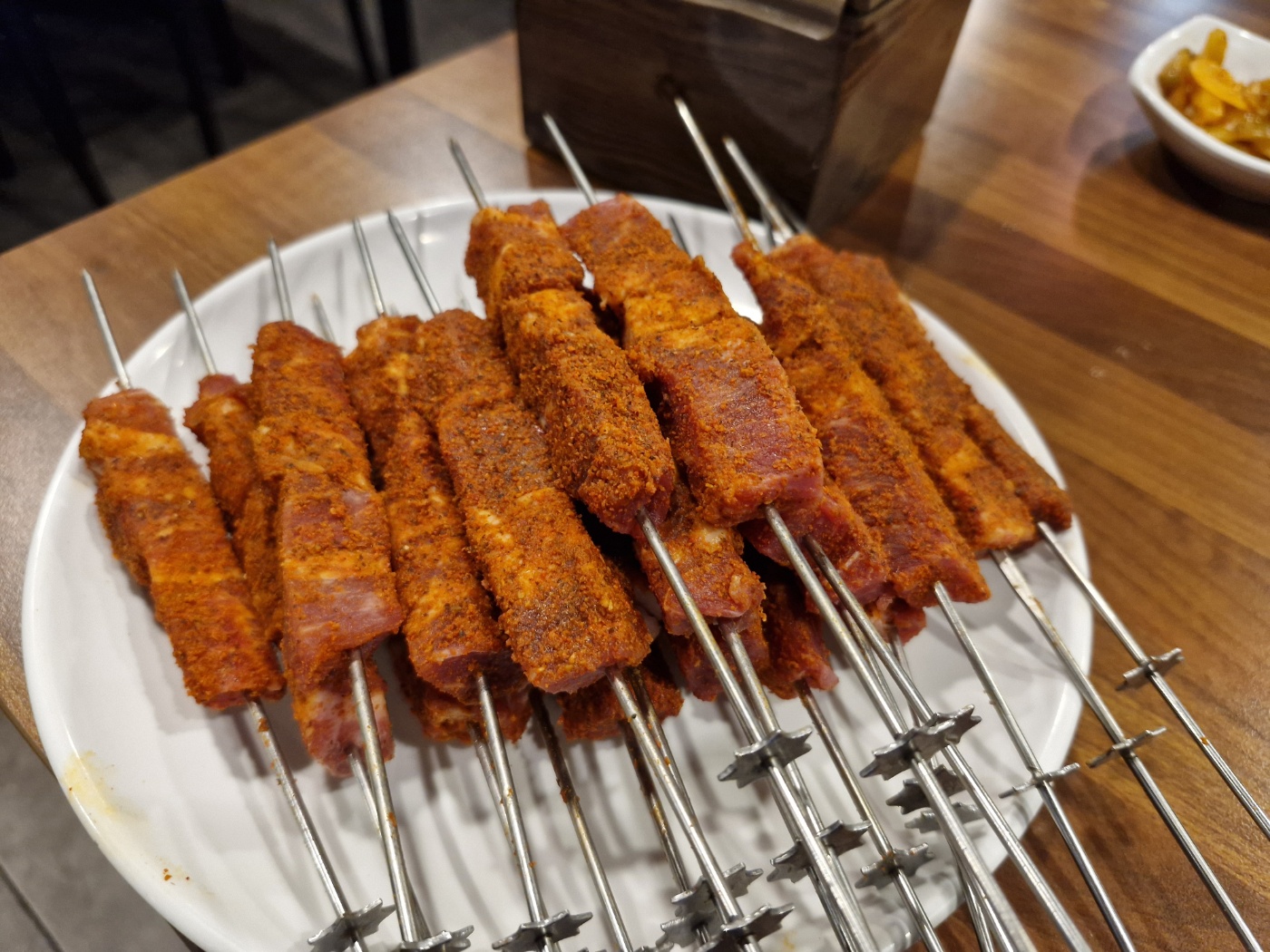 보통 생양고기 가 들어있는 양꼬치만 먹던 터라 양념이 묻은걸 보고 놀랐는데