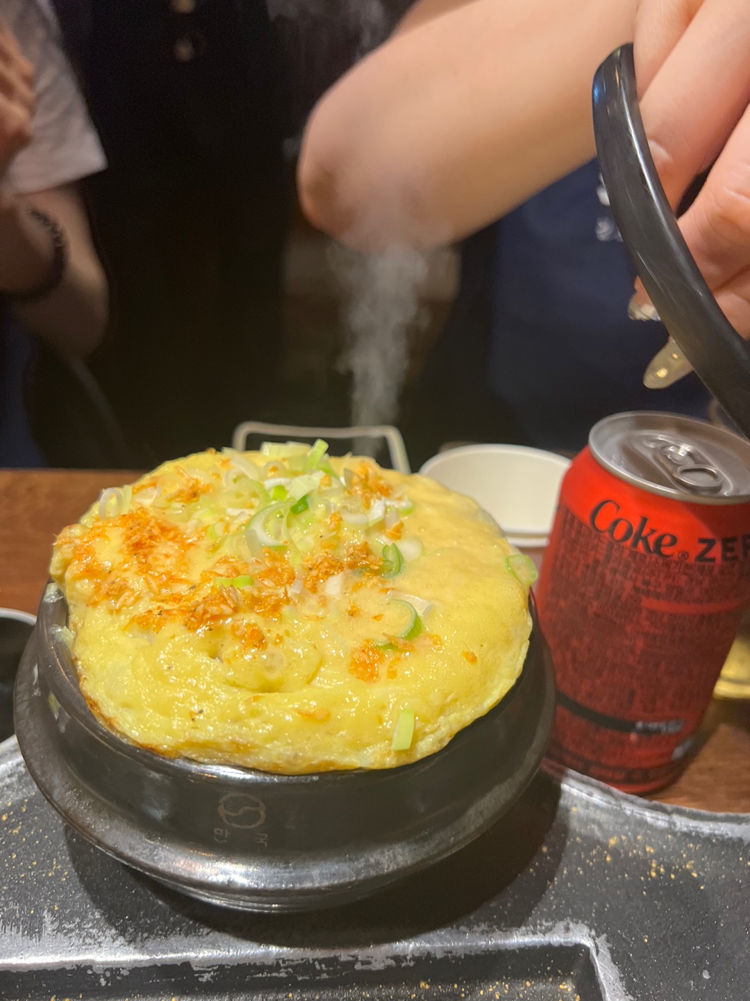 계란찜이 나왔습니다. 이거 정말 신기했어요 계란 중간에서 스팀이 계속 나오는데 어떻게 한거지? 하고 신기해서 계속 눈이 갔습니다. 맛은 말해뭐하나요 파가 송송 들어간 뚝배기 계란찜은 언제 어디서나 참 맛있습니다.