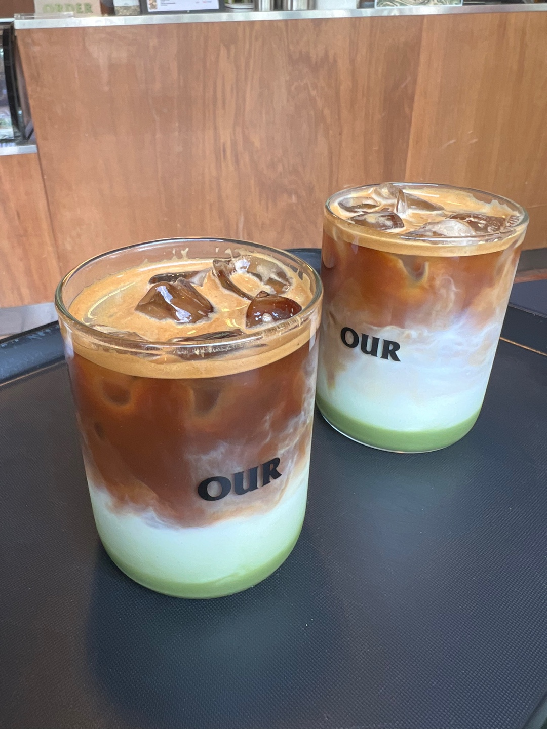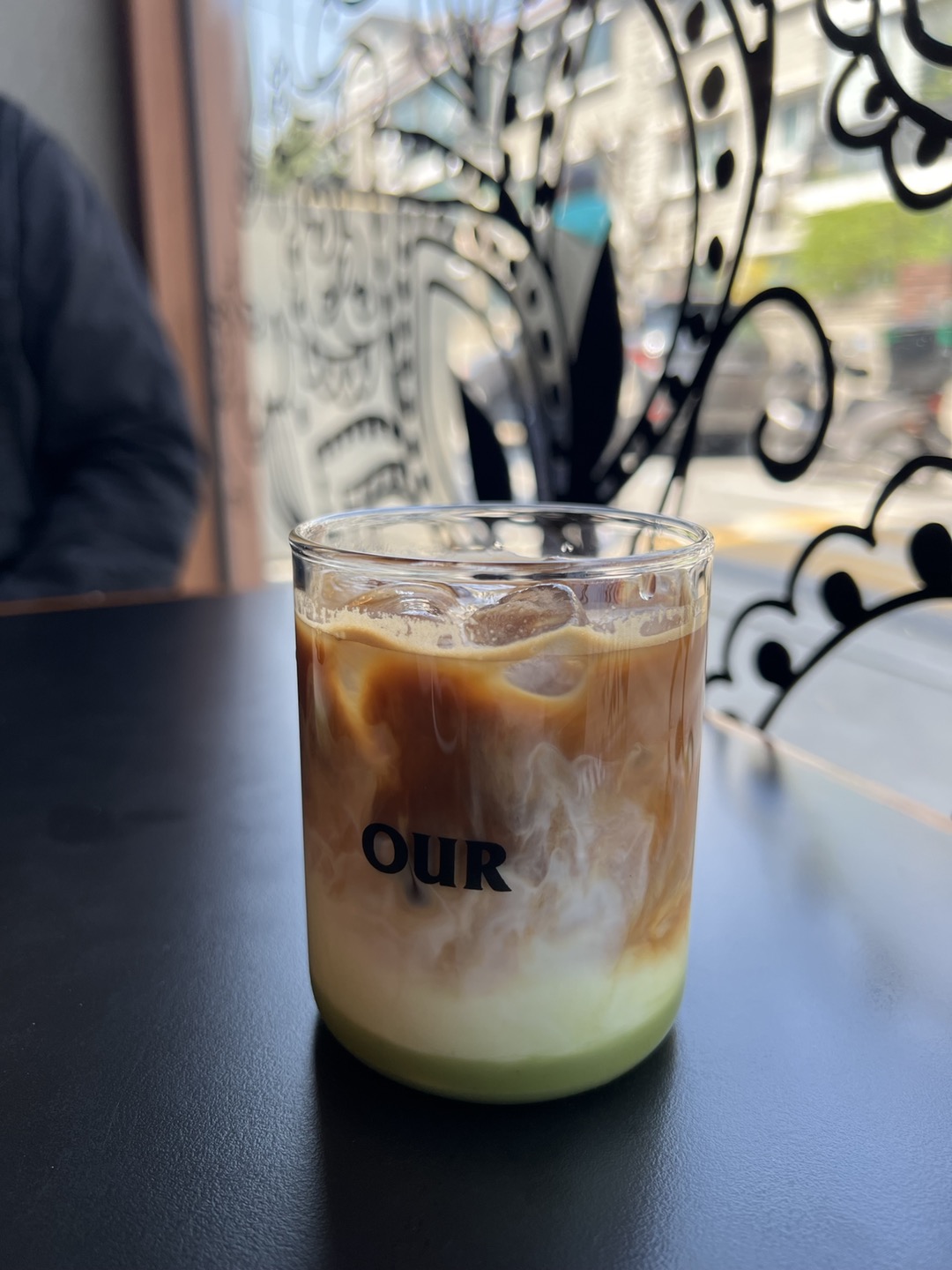 제가 아우어 카페를 올때마다 늘 시키는 것은 바로 그린티 더블 입니다. 그린티 라떼가 쌉싸름 하면서도 달달하기 때문에 평소에 굉장히 좋아하는데 까페마다 맛이 너무 다릅니다. 어떤 곳은 괜찮고 어떤곳은 시켰다가 맛이 없어서 버린적도 있어요. 제 입맛에 성공하기가 쉽지않은 녹차라떼 인데 하지만 아우어의 그린티더블은 맛이 있습니다. 컬러 배합도 너무나 예뻐서 마시기전엔 사진도 꼭 찍어줘야 합니다.