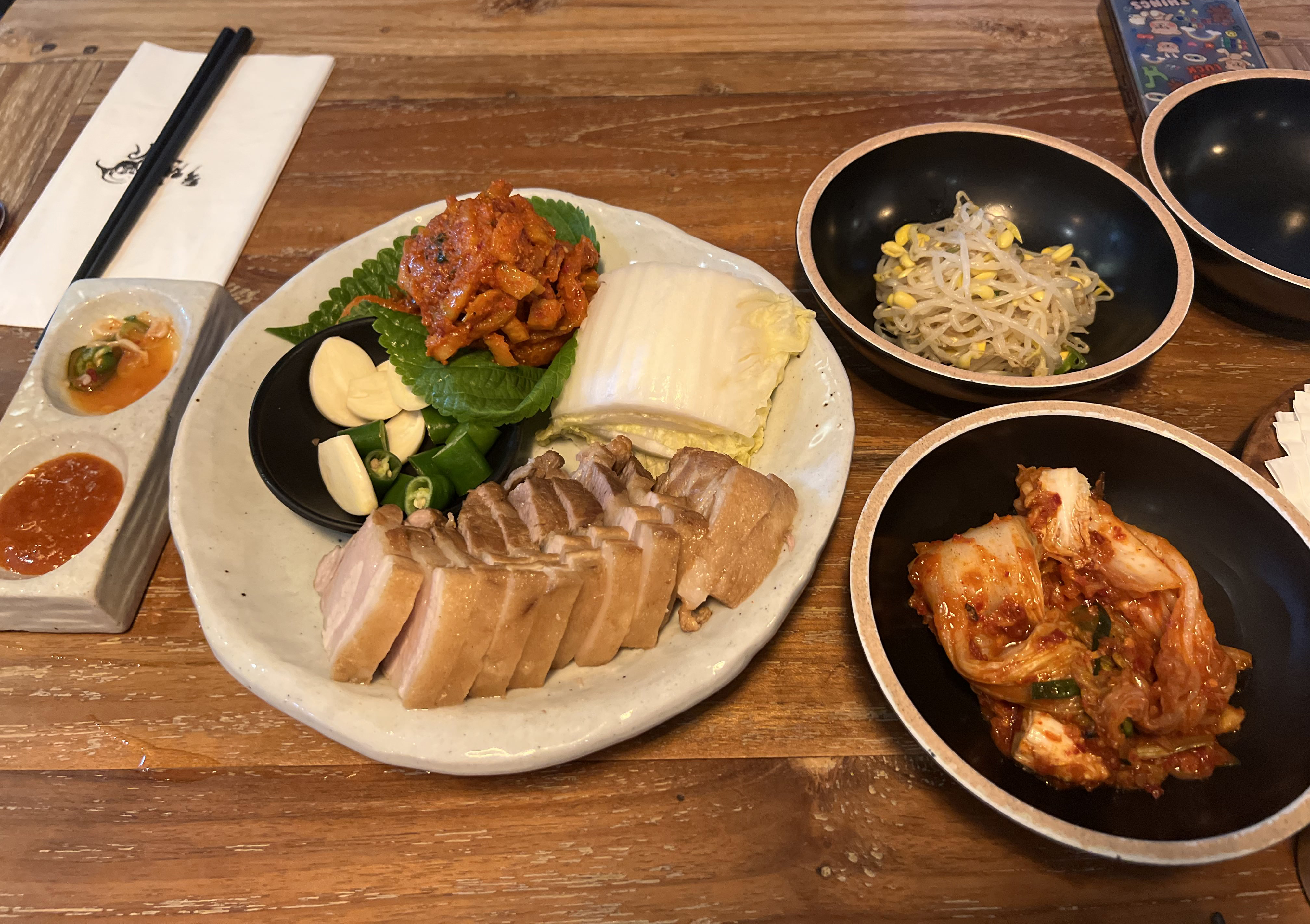 수육과 쌈을 먹을수 있는 상추, 쌈장, 새우젓, 매운 무무침, 마늘이 나와서 담백하게 맛이 잘 어울렸습니다.
