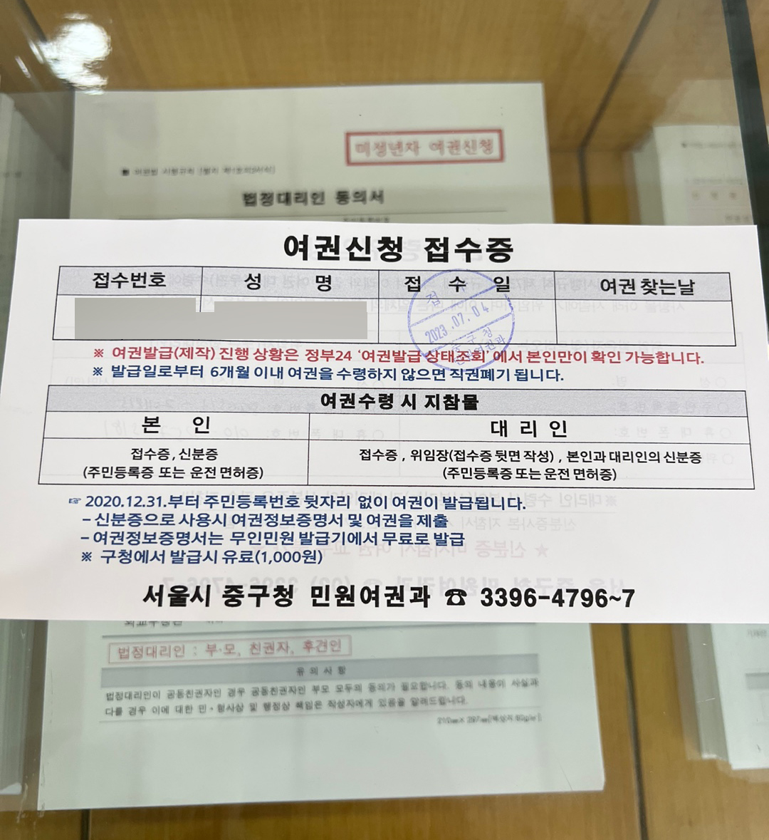 이제 접수 후 여권이 나오기만 기다리면 되겠습니다.