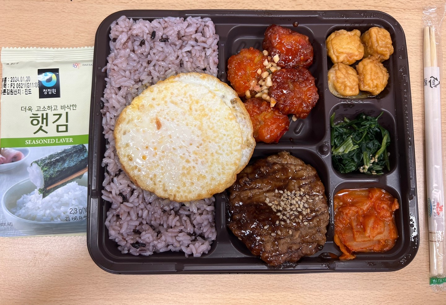 일단 흑미 밥과 계란 후라이가 올려져 있었습니다.
