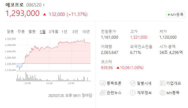 2023년 7월 25일 하루만에도 11프로 이상이 올라가고 있습니다.