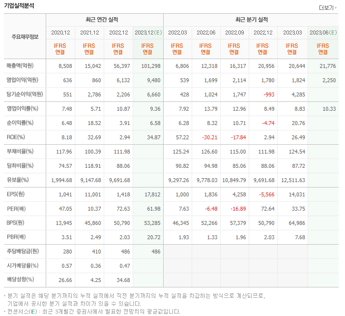 에코프로실적과 배당금 출처: 네이버 증권