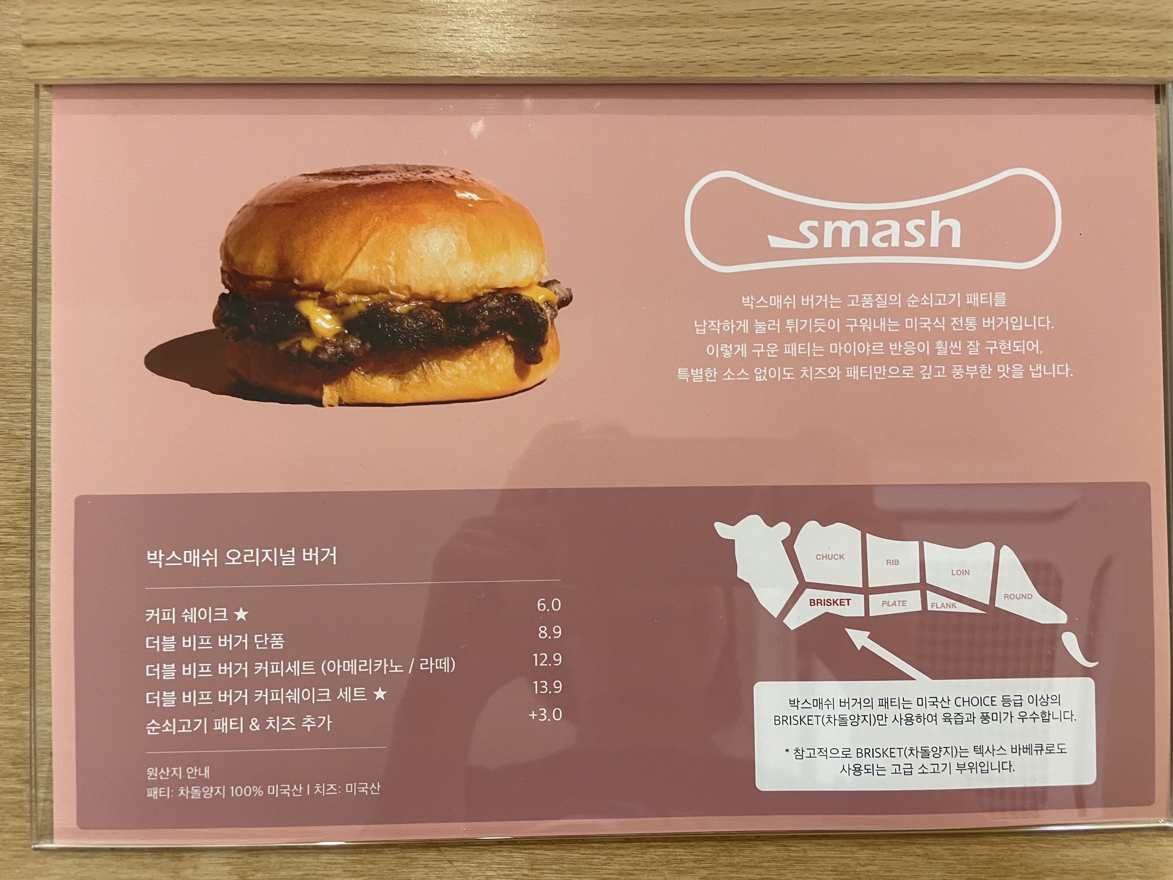 스콘과 커피 외에도 박스매쉬 오리지널 버거 라고 햄버거도 팔고 있습니다.