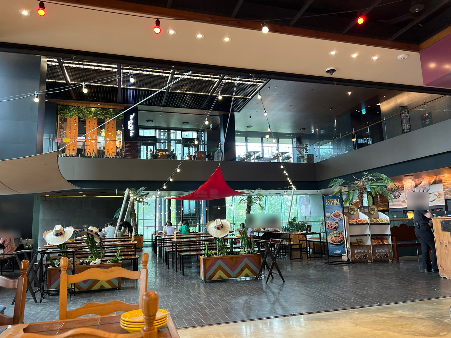 온더보더는 디타워 건물에 들어가서 에스컬레이터를 타고 2층으로 올라가면 나옵니다.