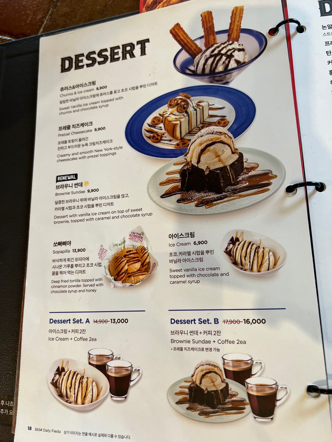 디저트 메뉴도 요즘 인기가 핫하게 떠오르는 츄러스 와 아이스크림도 있고