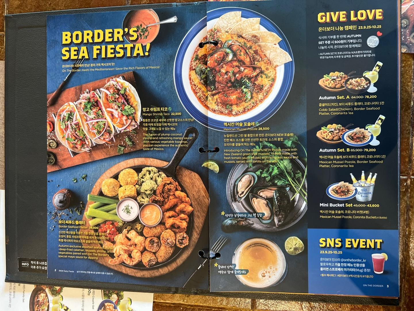 그중에서 오늘은 소프트쉘 타코 / 타코샐러드 / 그릴드 멕시칸 콘 을 시켜보았습니다.