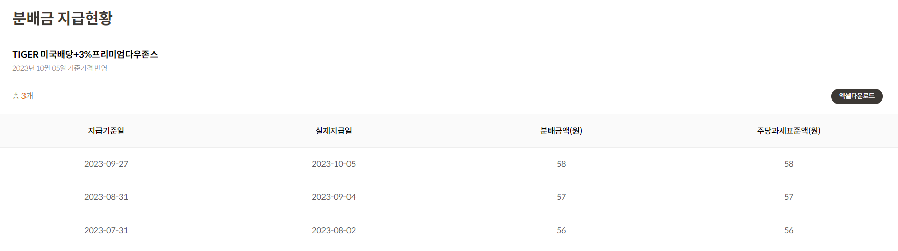 TIGER 미국배당 +3% 프리미엄 다우존스 는 생긴지 얼마 되지 않아
