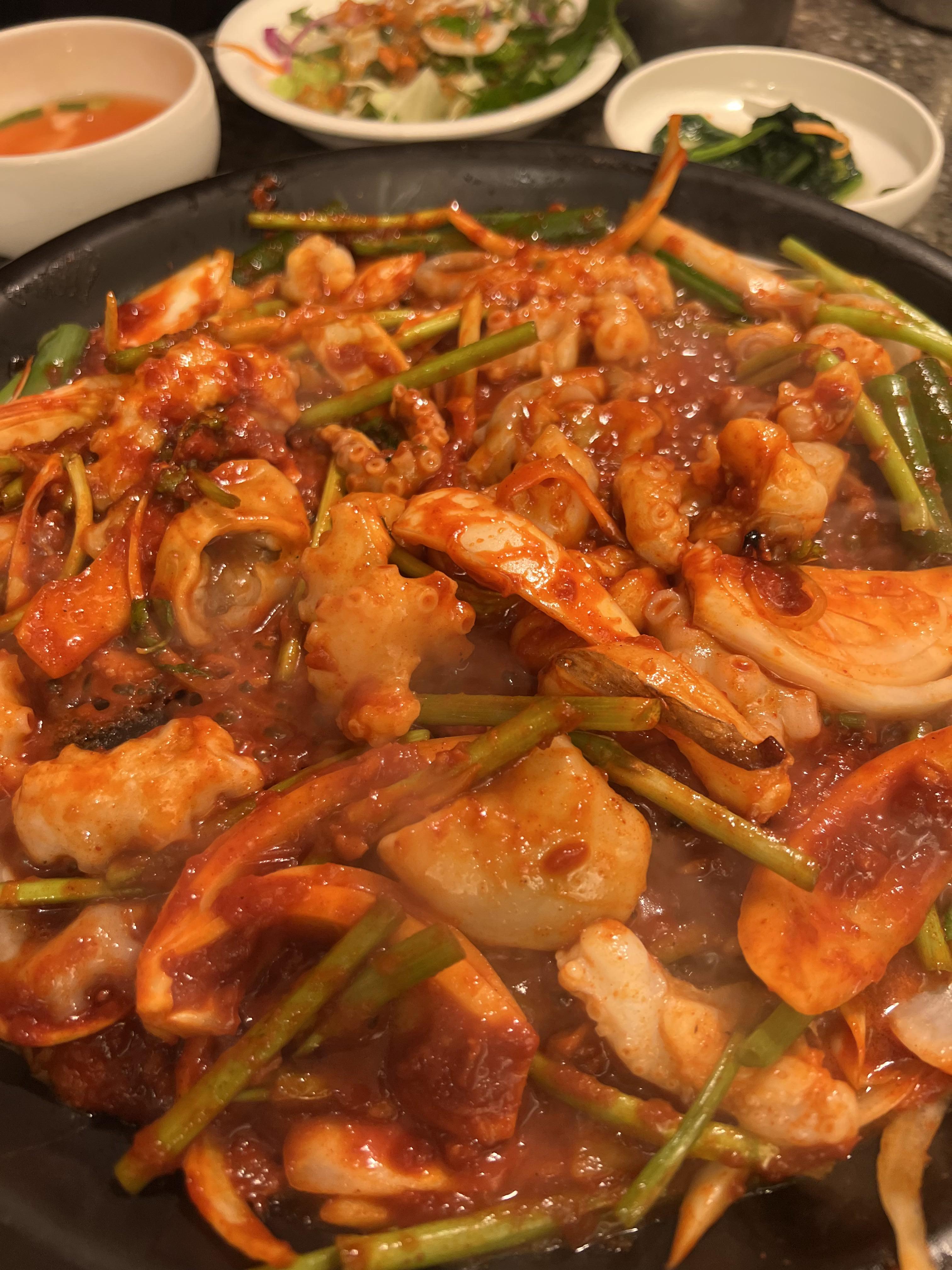 낙지가 아낌없이 들어가 있고 매운 소스가 향부터 군침이 돕니다.
