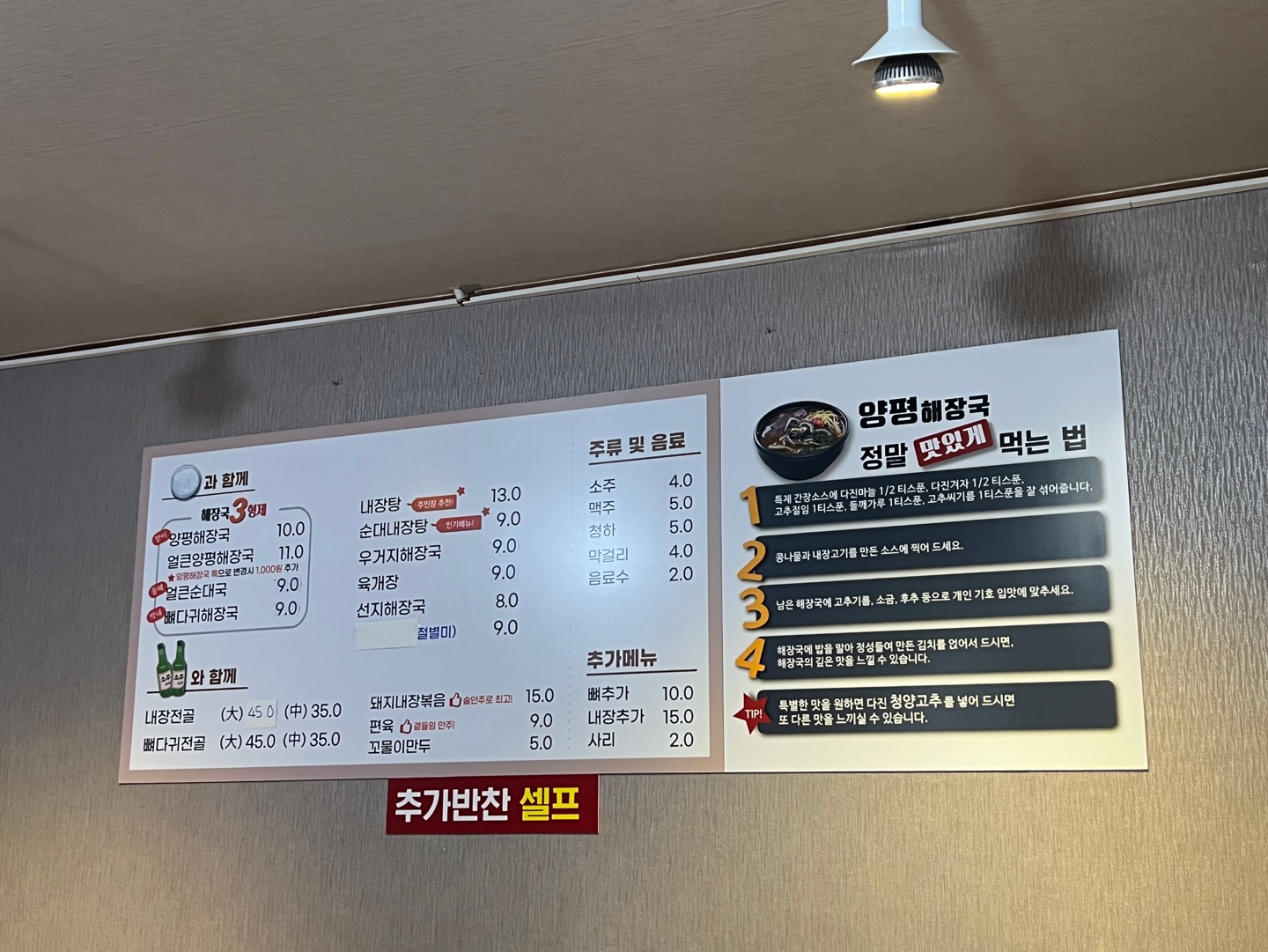 그리고 저녁에 선지해장국을 먹으러 일품 양평해장국에 들어갔습니다.