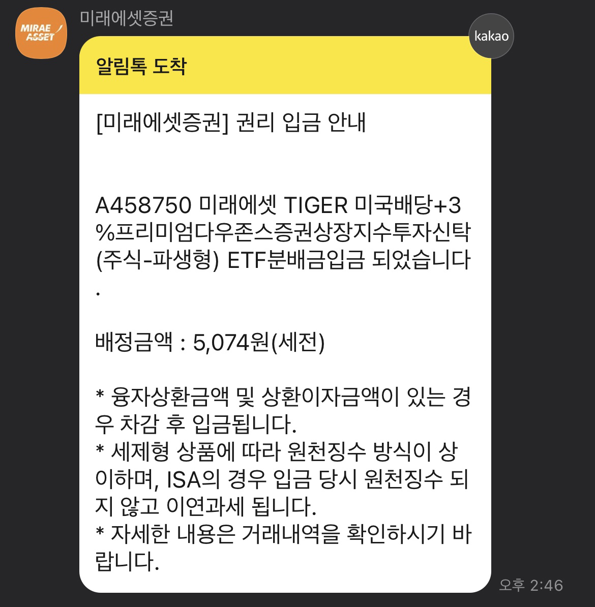 5,074 의 배당금이 들어왔습니다.
